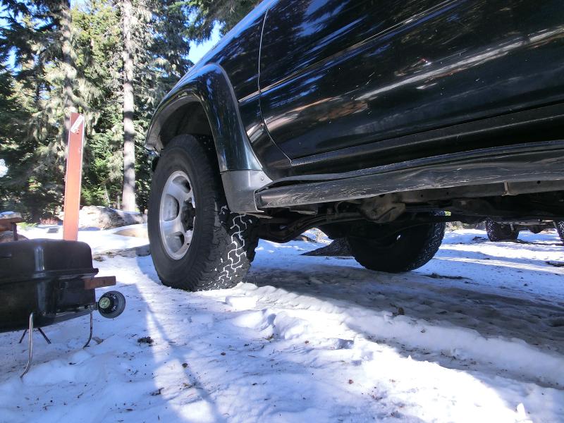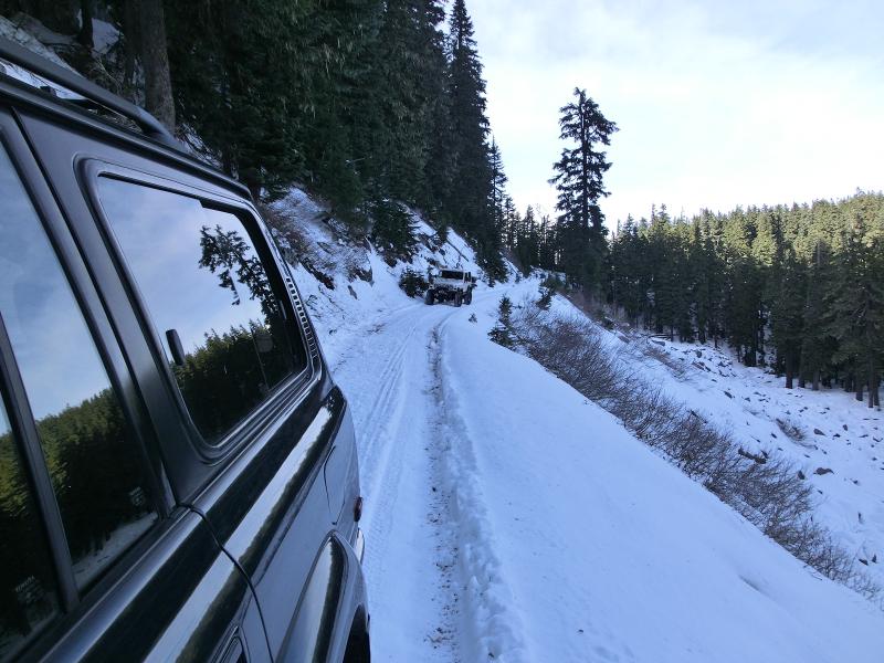 On the way back from Camp Windy, the Cruiser tires seemed to provide little to no traction on the snow and kept breaking through the ice layer on top. On one corner of the road, I kept plowing off into the cliff and as kept trying to go back and forth. I ended up having to use the winch to keep myself straight. We did end up making it back to camp though.